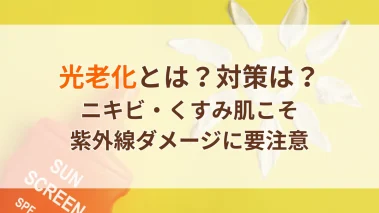 「光老化(ひかりろうか)」という言葉を聞いたことがありますか?肌の老化は2種類あり、自然な老化とは別に挙げられるのが紫外線による光老化です。聞き慣れない単語ですが、光老化はじつはとても身近なもので、シミやしわ、たるみだけでなく、ニキビ肌やく...